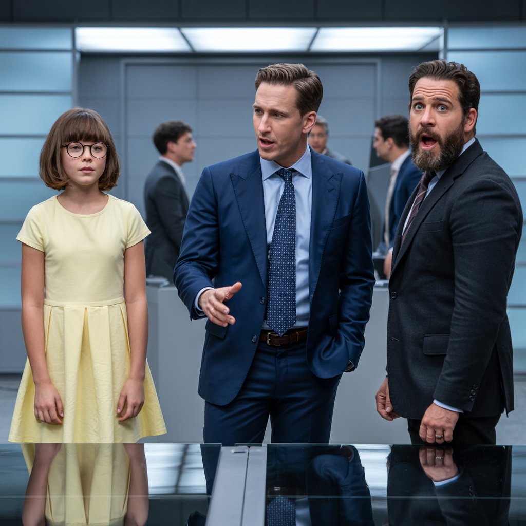 Every head snapped in her direction. The silence was immediate, absolute. Wagner and Kleist exchanged an uneasy glance. The girl, no older than ten, was Lina. She had been waiting quietly for her mother, Elena, the building’s evening cleaner, to finish her shift. She’d been reading scraps of the contract upside down while the adults talked, and something didn’t add up.