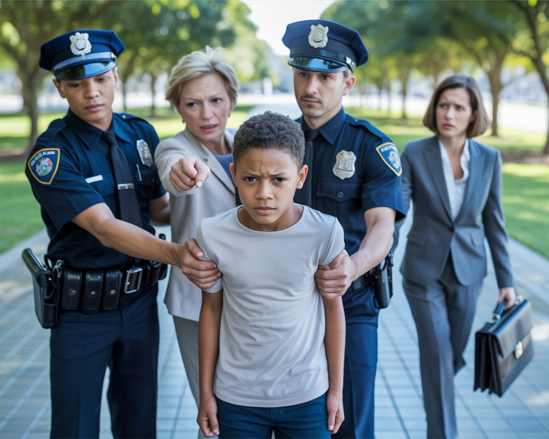 The words sliced through the park’s quiet afternoon air like a knife, turning the tranquil atmosphere into a tense, ugly scene. A middle-aged woman, her blonde hair perfectly coiffed, pointed furiously at a Black teenager who was sitting quietly on a bench. She clutched her phone so tightly it looked like it might shatter. Her voice was loud enough to draw the attention of everyone present, but the boy, seemingly confused, simply stared back, unsure what he had done to provoke such fury.