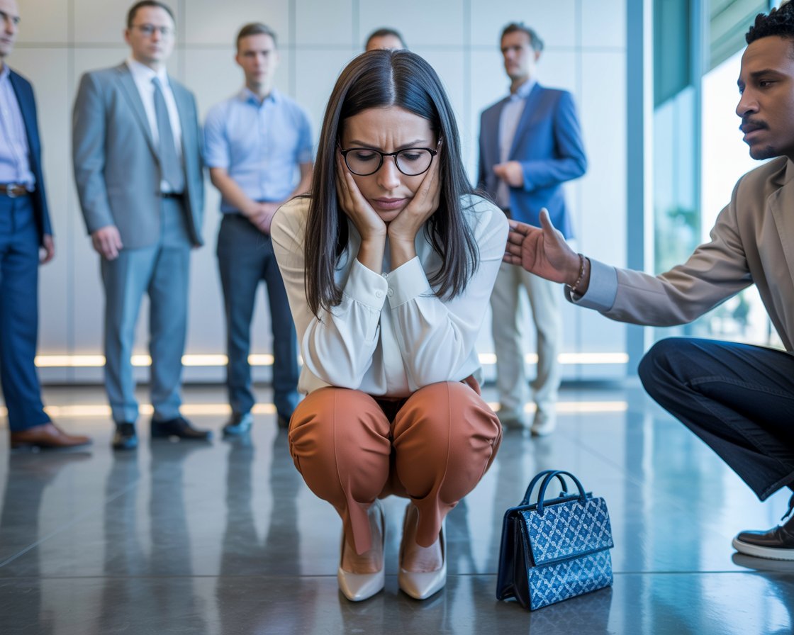 “Please,” the woman pleaded. She was dressed impeccably in a business suit, but she was gesturing desperately toward her feet. One of her high heels had snapped completely, leaving her standing awkwardly on the sidewalk. “I have a critical meeting, and I can’t walk in like this. Please, just buy me a new pair. There’s a store right there!”