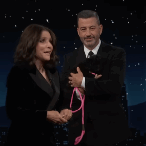 It started not with a roar, but with a puppy. When Julia Louis-Dreyfus walked onto the set of “Jimmy Kimmel Live,” cradling a…